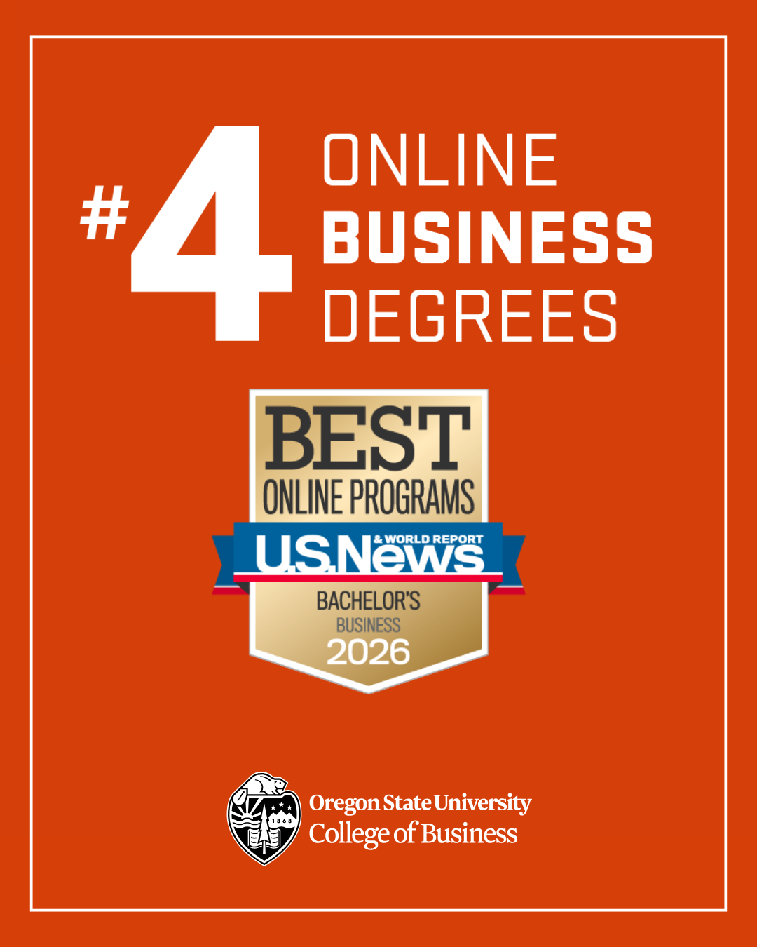 For 12 consecutive years, Oregon State University has been recognized as a Top 10 national leader in online education. This year, the College of Business is ranked No. 4 in the nation for Best Online Bachelor’s in Business, the sixth consecutive year in the Top 5.